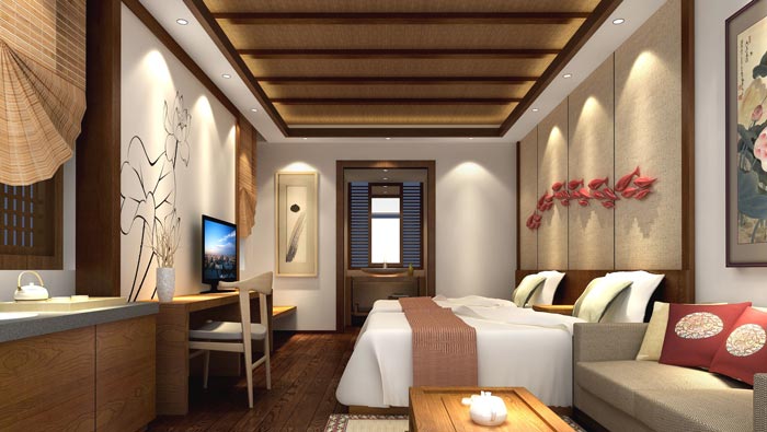 客房的設(shè)計(jì):當(dāng)顧客拖著疲憊的身體回到房間之后,最希望的就是躺下好好休息一下,這樣一來空間的氛圍就十分重要,而中式家具本身就有治愈的能力,因?yàn)槟敬碇偕弥惺郊揖唿c(diǎn)綴的空間,讓人更容易進(jìn)入深層次的睡眠,讓人在熟睡中得以快速的恢復(fù)疲憊的身心。