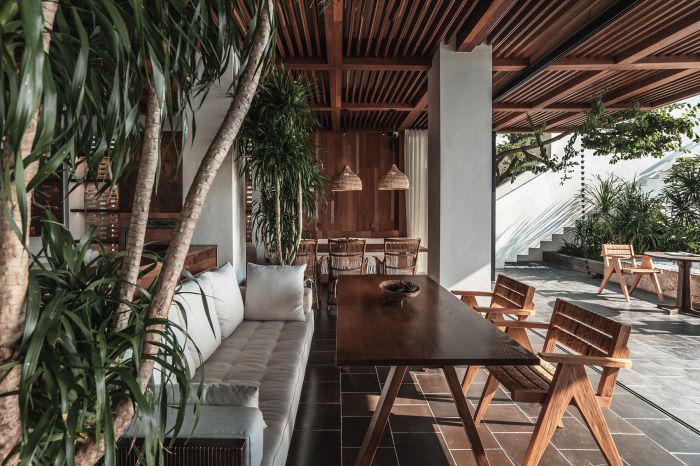 酒店空間不再是單一的功能場(chǎng)景,而是盡可能梳理出豐富的生活場(chǎng)景,為人們提供充分的自主選擇權(quán)。同時(shí),設(shè)計(jì)師使用自然材料和流動(dòng)的光影、花香等元素,連接本地文化,為居住者提供一種感動(dòng)源自自然與在地性的度假體驗(yàn)。