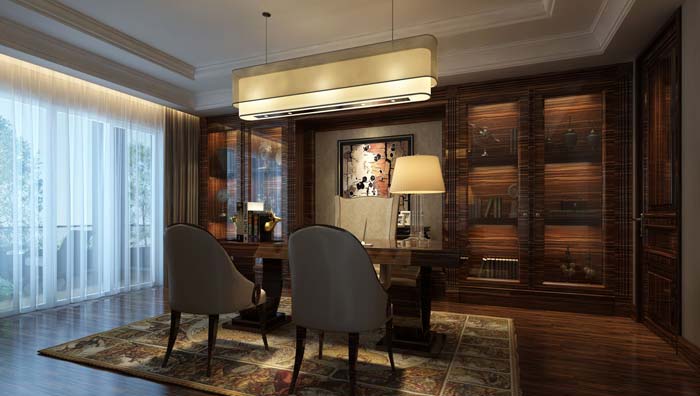 別墅裝修設計的時候沿用了歐式設計原理 ,在平面設計上盡可能擺脫建筑的缺陷,用裝飾手法做到空間圍合,使空間主角能直接體,但又相互緊扣。