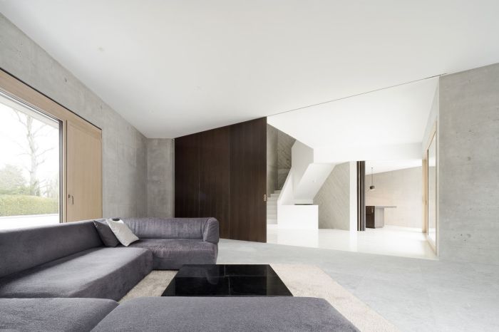 L 形狀別墅是一個同時包括辦公區域和公寓區域的單戶住宅,它被雕刻成一塊巨大的混凝土石,看起來就像是內外都是混凝土,而沒有任何隔斷和涂層。