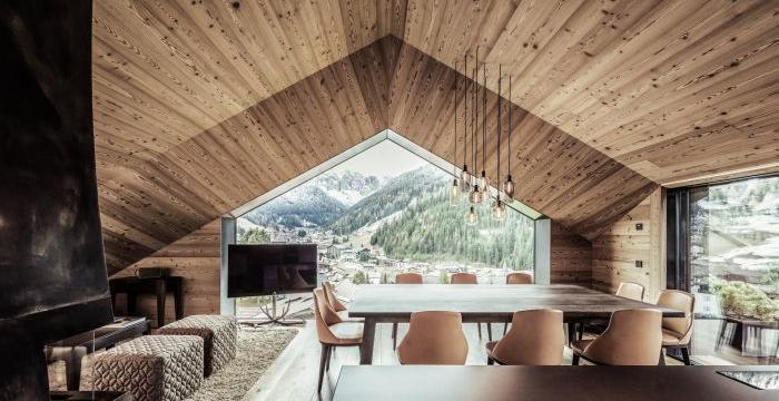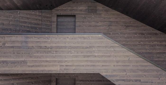 一間木質自然別墅裝修設計,空間面積600平方米。它位于一個獨特的景觀的中心,提供了一個特殊的景觀的鞍地塊。整棟建筑都是現代主義建筑,線條清澈,但同時也承載著。建筑傳統的呼應像使用當地的材料,如石頭和木材。