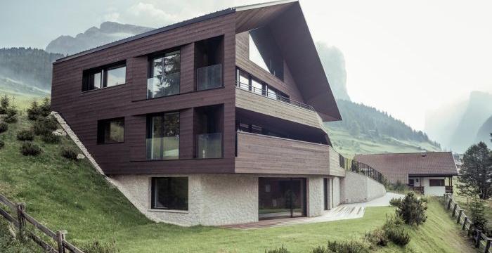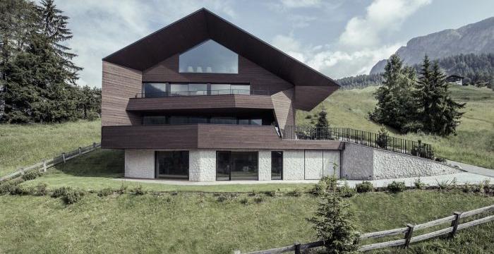 該項目的主要目標是將建筑物與周圍的自然高山景觀結合起來。地形的陡峭意味著將建筑物延伸到四層以上,前兩層。部分低于年級。房子的北側有一個較小的正面,而主要的正面面對南面,有很大的窗戶可以俯瞰美麗的風景。