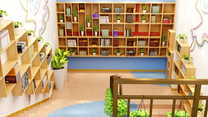 本次為舞蹈培訓機構裝修設計項目,在培訓機構設計之初,設計師通過交流了解到,企業希望設計一個以3到12歲小孩為主的舞蹈教育培訓中心,在勘察現場的時候發現場地是一間兩層建筑,設計師的構想就是在一樓打造一個類似圖書館的閱讀空間,以此吸引家長與孩子的興趣。