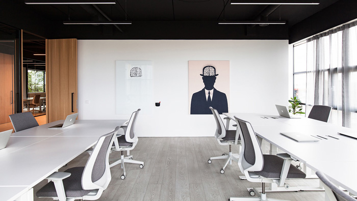 本次為培訓教育辦公室裝修設計效果圖,辦公室設計面積350平方,設計師在辦公室設計中,以頭腦風暴和可轉換休息區為辦公室設計方向,目的就是為方形白色辦公空間營造舒適的感覺。