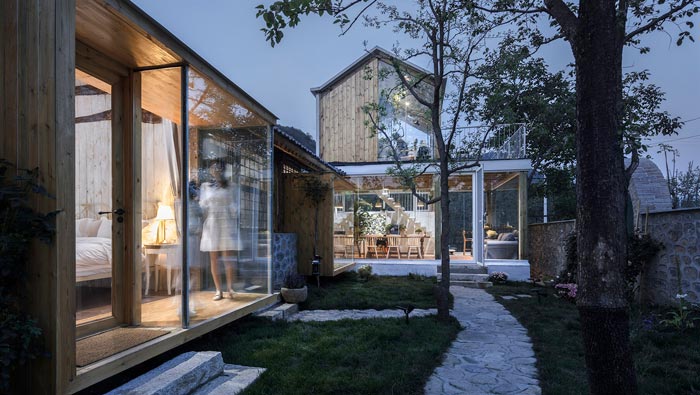 本案鄉村景區民宿改造介紹結束,改造策略為保留原有木結構,更新部分外界面,拆除原有破敗的屋頂,增加保溫層和防水層,增加天窗,并將原有的小青瓦回收再利用。