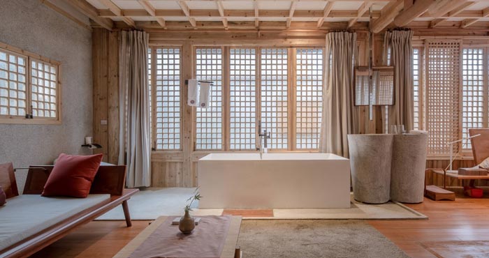 本次為古鎮(zhèn)鄉(xiāng)村民宿改造項(xiàng)目,這是兩棟三合院,一共400平米, 重新翻修,材料全部用的是木頭,打造一個(gè)隨性、寧?kù)o、舒心的居住環(huán)境。