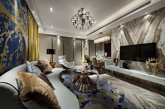 在軟裝的配飾中運用了新古典后現代的家具風格,讓略顯沉悶的空間增添了時尚奢華的氣氛;