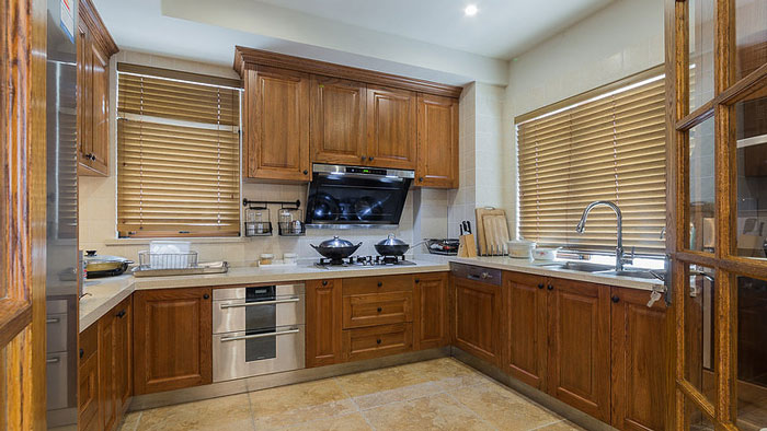 4:在裝飾上也有很多講究,如喜好仿古面的墻磚、櫥具門板喜好用實(shí)木門扇或是白色模壓門扇仿木紋色;